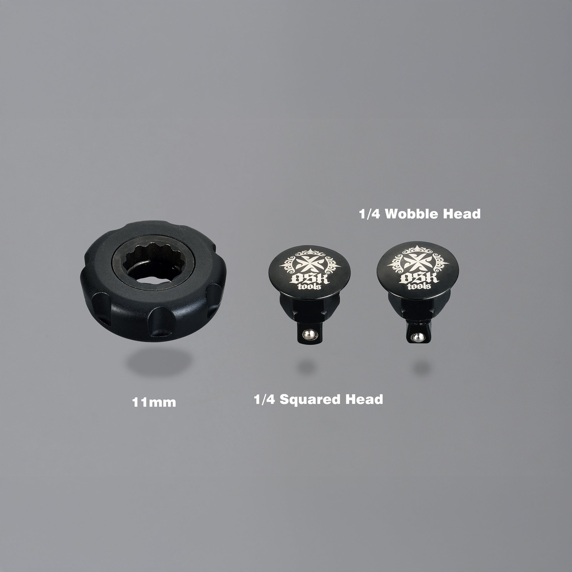 Includes 1/4" standard and wobble adaptors
